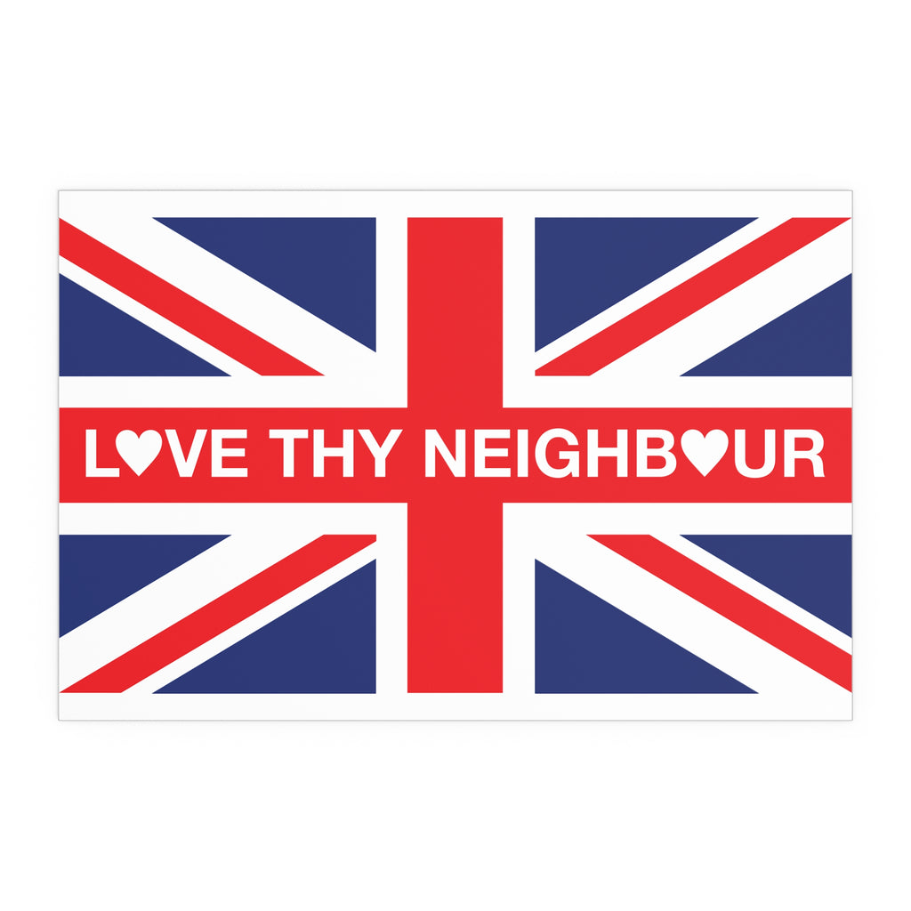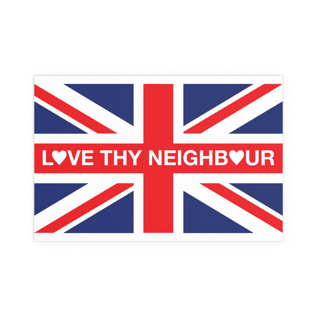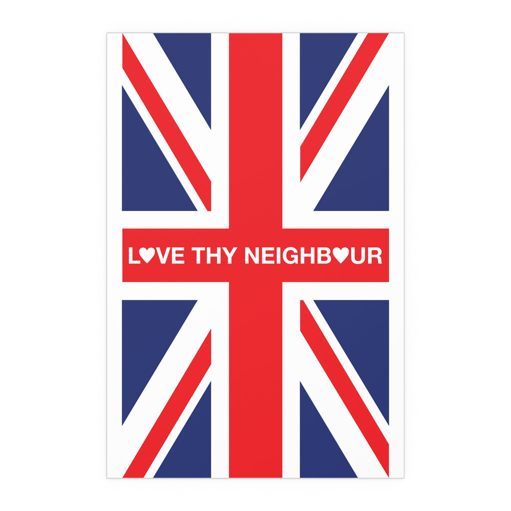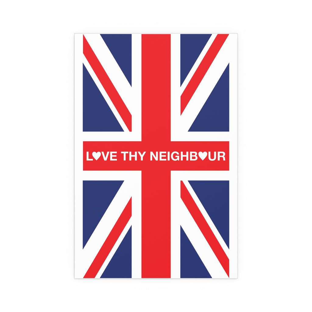 Make space for pride that welcomes everyone. Our Love Thy Neighbour Union Jack poster reimagines the Union Flag as a bold, modern statement for homes, studios, and storefronts. Clean lines, saturated colour, and a semi-gloss finish give the design real presence—whether you hang it framed on a wall or display it in a window.