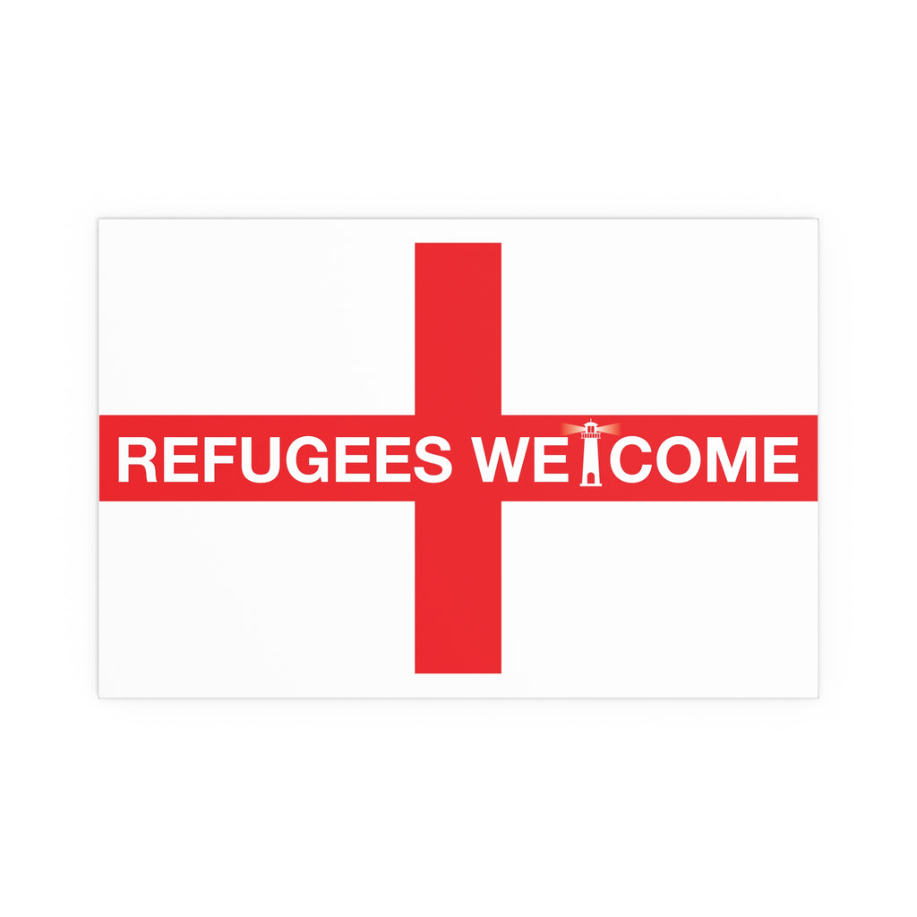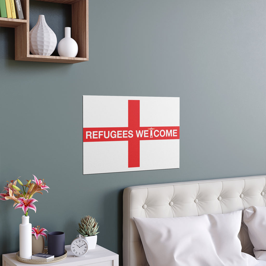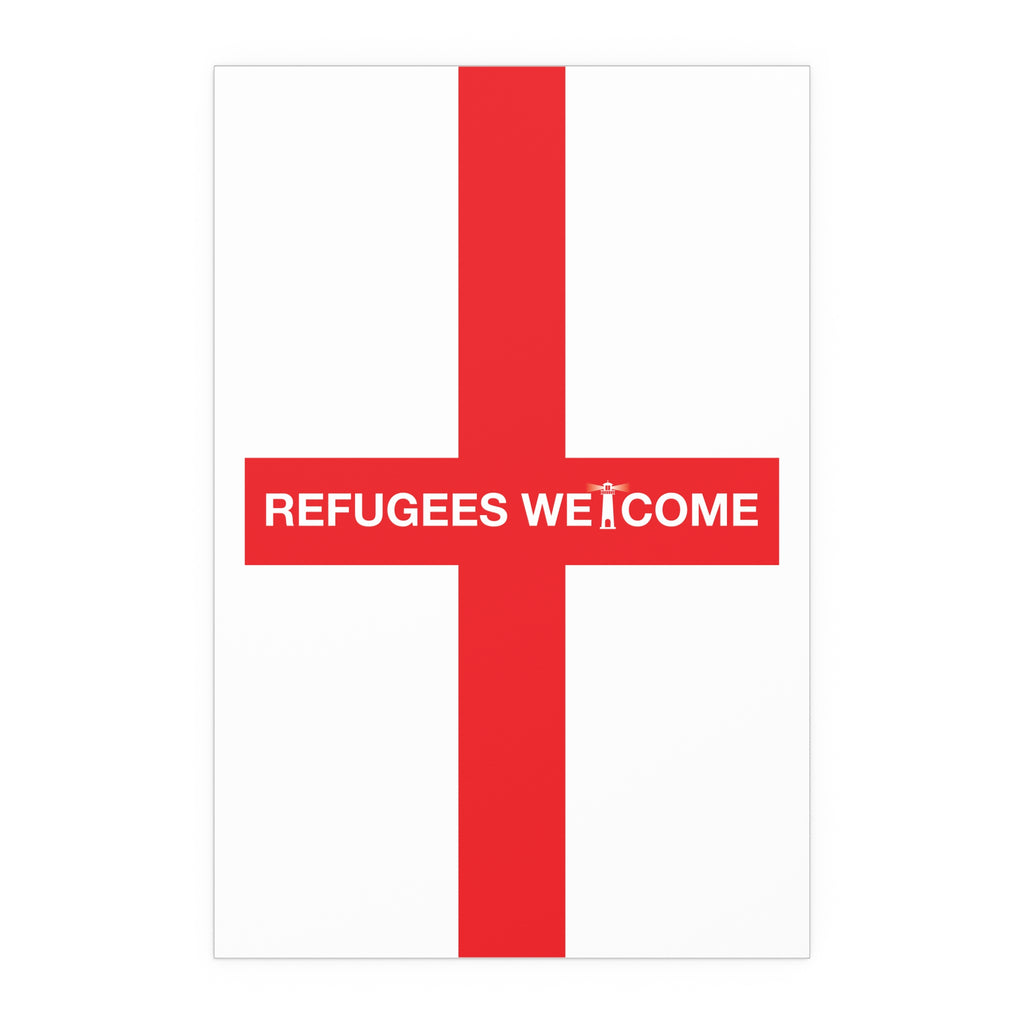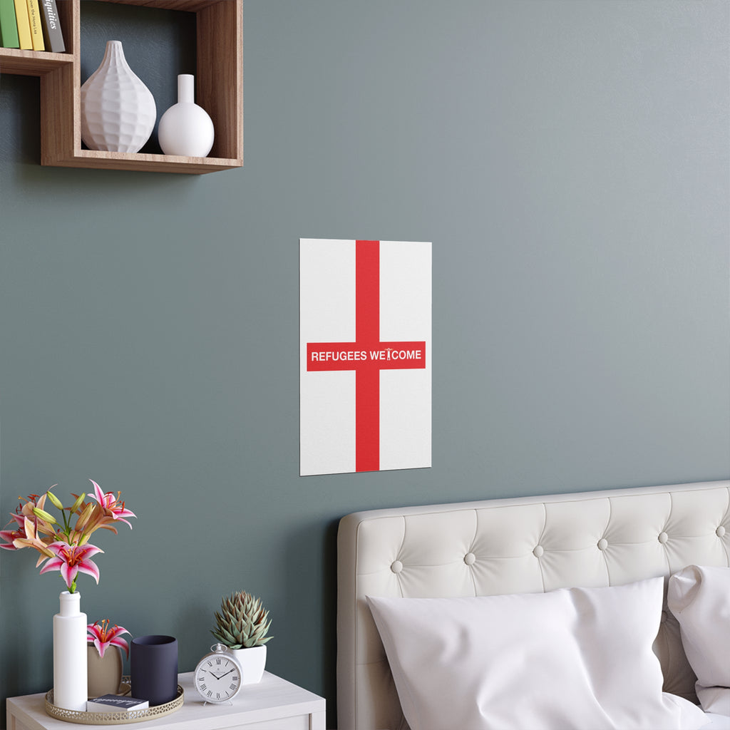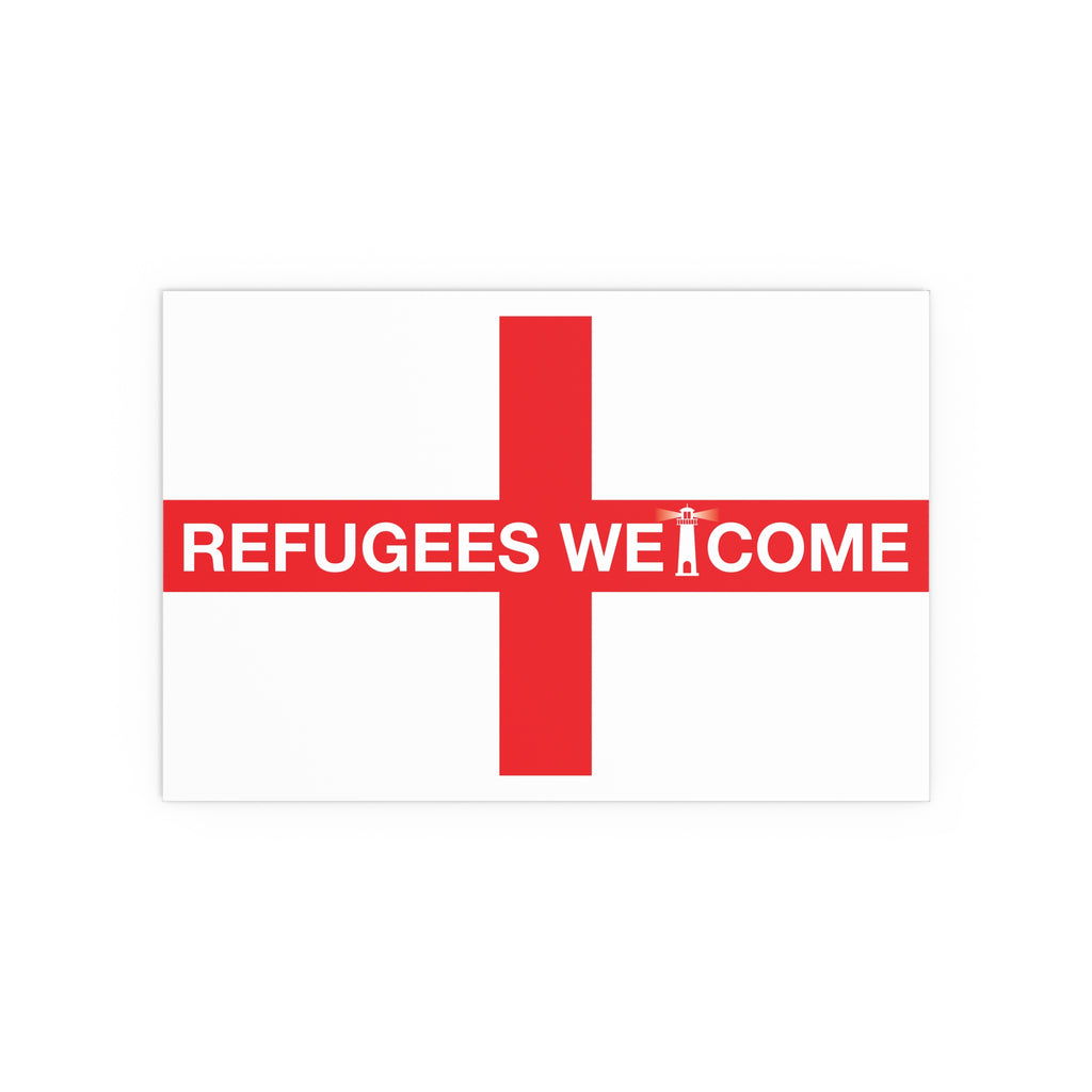Make space for pride that welcomes everyone. Our Refugees Welcome England poster reimagines the St George’s Cross as a bold, modern statement for homes, studios, and storefronts. Clean lines, saturated colour, and a semi-gloss finish give the design real presence—whether you hang it framed on a wall or display it in a window.