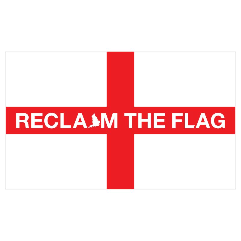 Reclaim the England Flag — St George’s Cross (100 cm × 60 cm in, Small); durable lightweight fabric for indoor/outdoor use; vivid long-lasting print; reinforced edges for strength and stability; easy to hang, fly or display in windows and community spaces; part of the Reclaim the Flag collection; clear message of compassion, solidarity and inclusion.