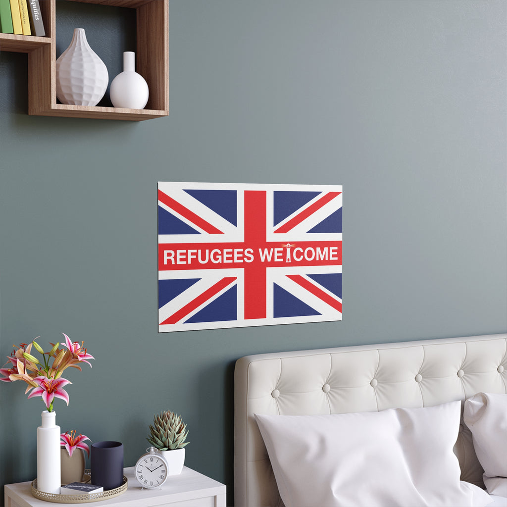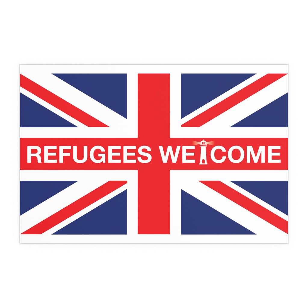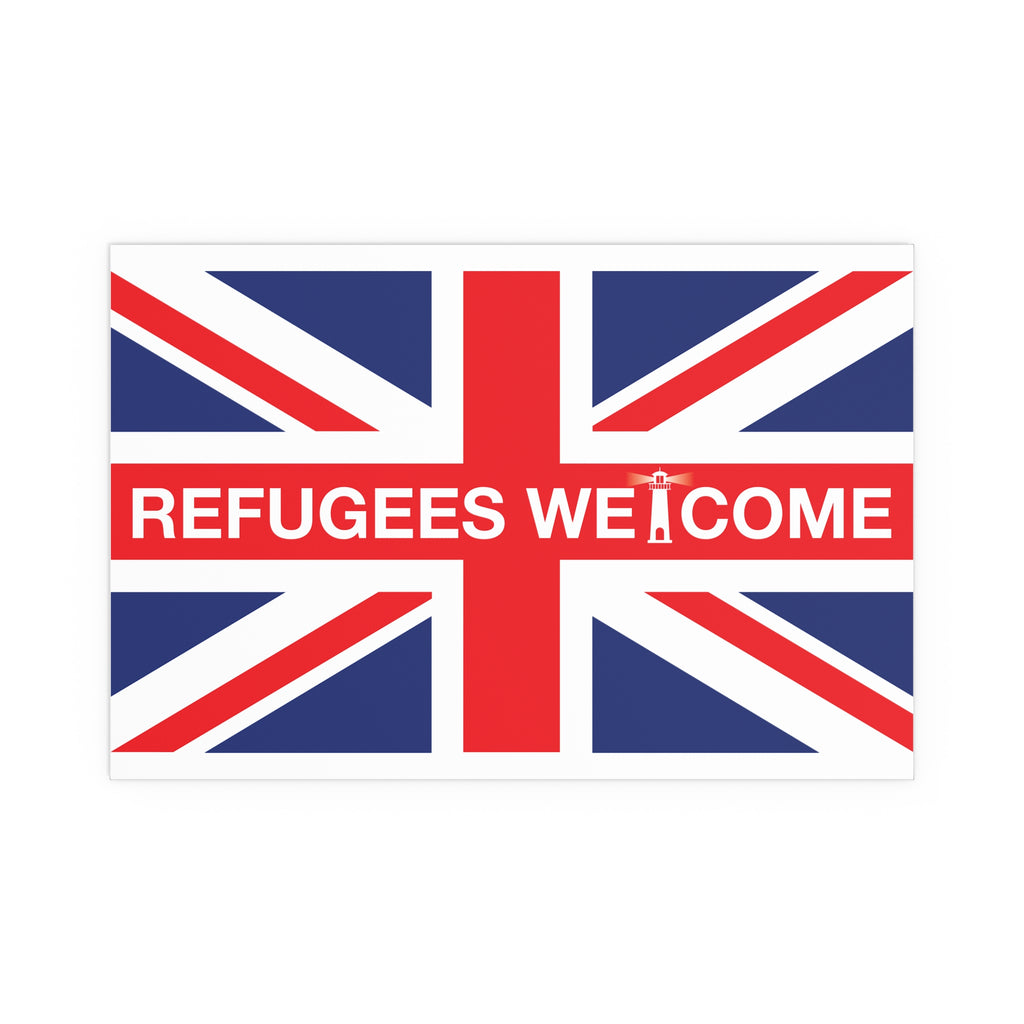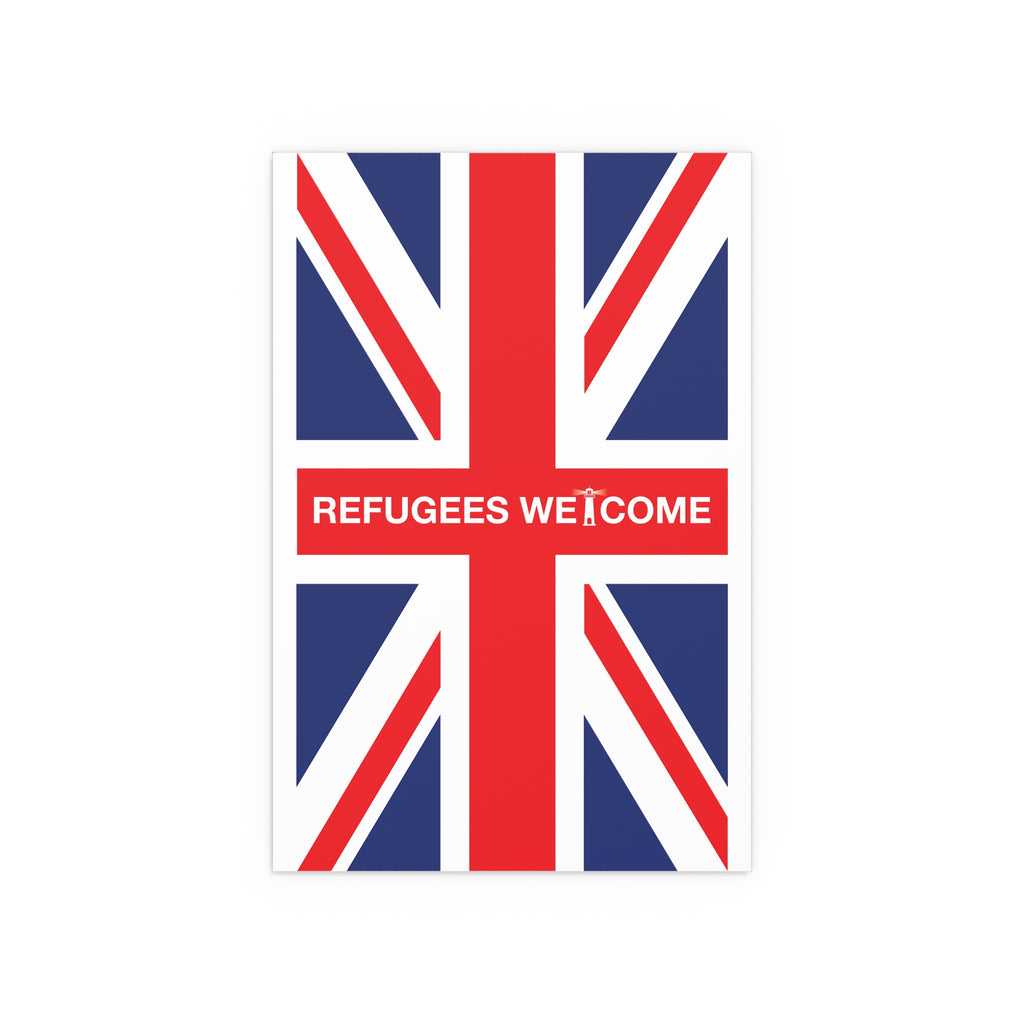 Make space for pride that welcomes everyone. Our Refugees Welcome Union Jack poster reimagines the Union Flag as a bold, modern statement for homes, studios, and storefronts. Clean lines, saturated colour, and a semi-gloss finish give the design real presence—whether you hang it framed on a wall or display it in a window.